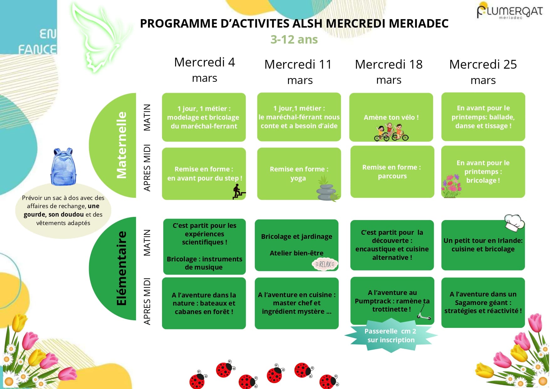 Les accueils de loisirs de Mériadec et Plumergat vous ont concocté un chouette programme pour le mois de mars !