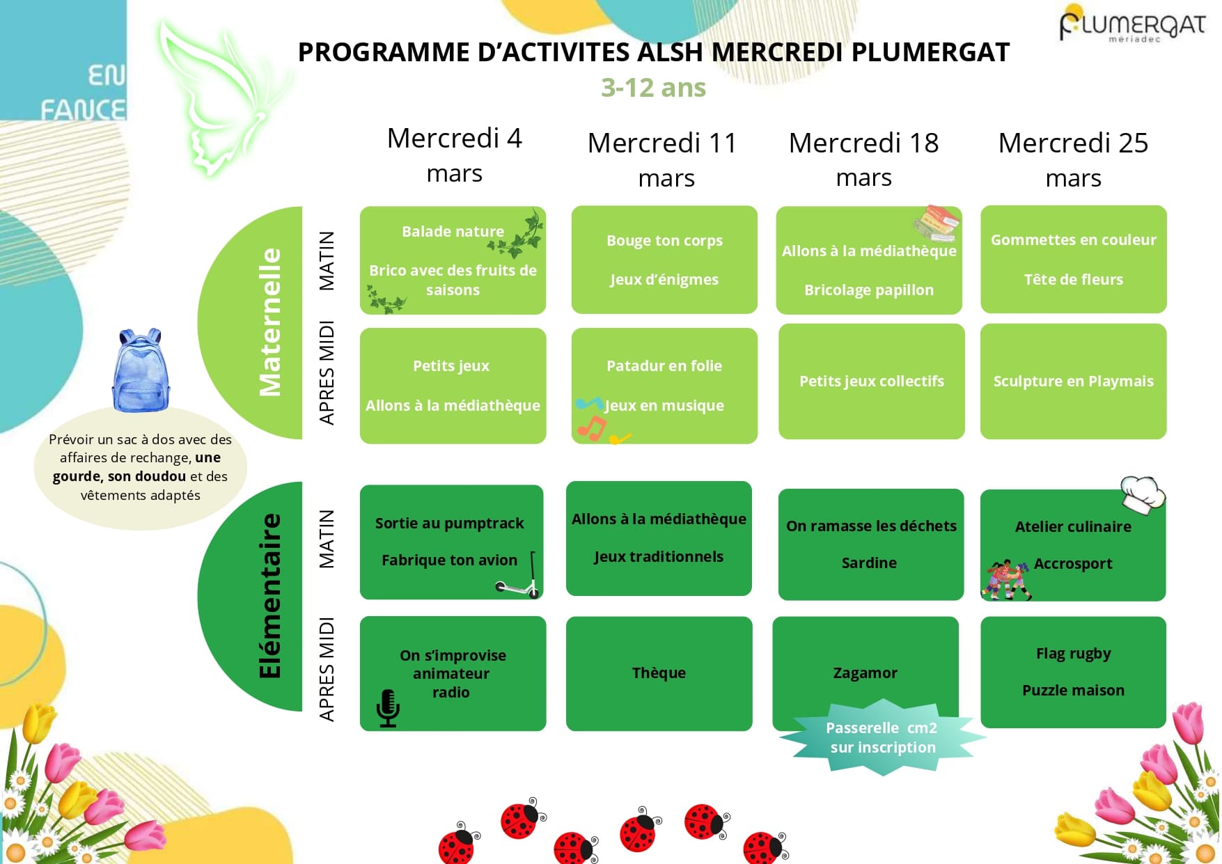 ici, la programmation des mercredis de mars à Mériadec et Plumergat