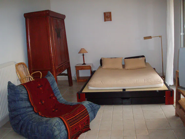 Il y a une seconde chambre avec 2 lits en 90 et un lit d’appoint si nécessaire, une salle de bain, des toilettes.
