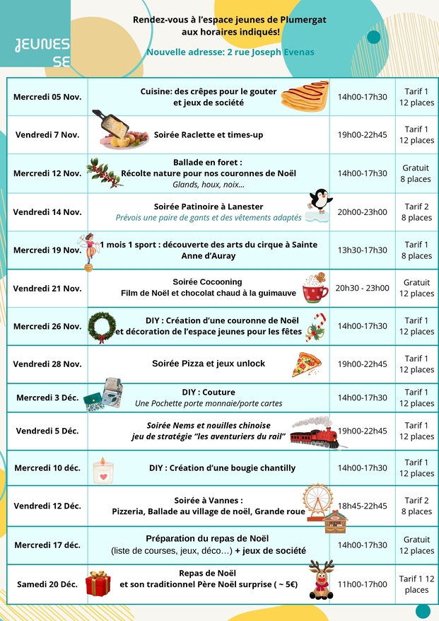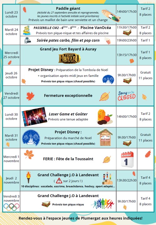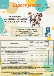 La commune de Plumergat anime un espace jeunesse pour les adolescents de la 6ème jusqu’à l’âge de 17 ans. Basé sur un projet éducatif qui place l’adolescent au cœur du dispositif d’accueil, l’objectif est de permettre au jeune d’être acteur de ses vacances en lui donnant les moyens d’exprimer ses idées et ses envies et en favorisant son investissement personnel.