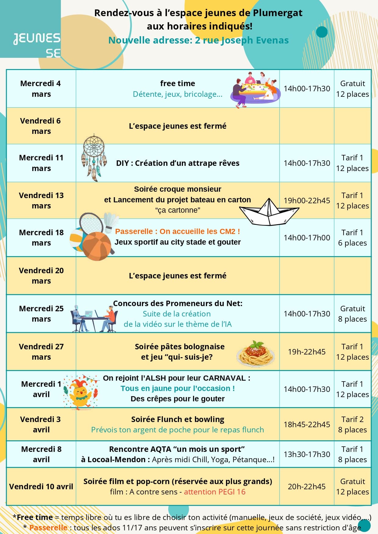 L’Espace Jeunes de Plumergat vous a concocté un chouette programme pour le mois de mars !