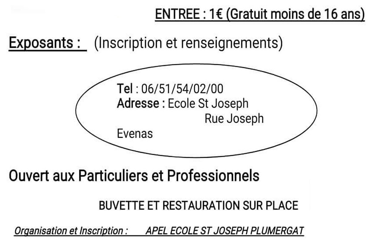 ——————— Inscription 06.51.54.02.00 ou par mail ecolesaintjoseph.plumergat@yahoo.com