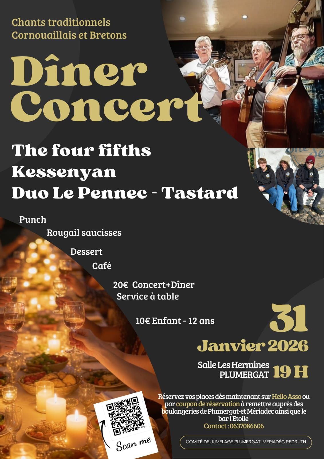 Dîner concert avec 2 groupes anglais de Cornouailles The Four Fiths et Kessenyan et un groupe breton duo Le Pennec – Tastard