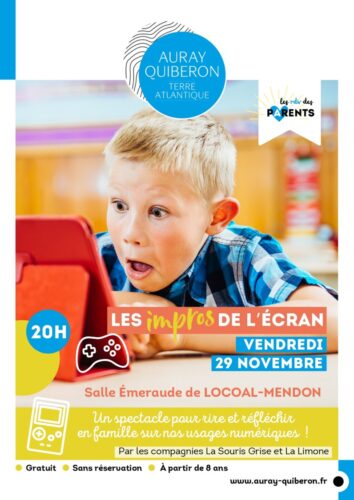 Premier grand rendez-vous pour « LES RENDEZ-VOUS DES PARENTS » : un spectacle d’improvisation sur les usages des écrans par nos enfants, qu’ils soient petits ou un peu plus grands ! Rendez-vous vendredi 29 novembre à 20h à Locoal-Mendon (salle Emeraude).