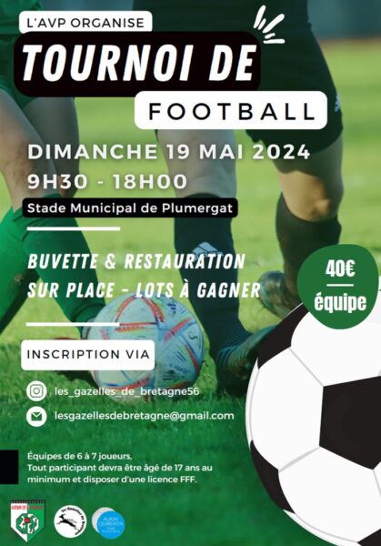 Les Gazelles de Bretagne organisent en collaboration avec L’Avenir de Plumergat un tournoi de football à 6 le dimanche 19 mai à partir de 9h30.