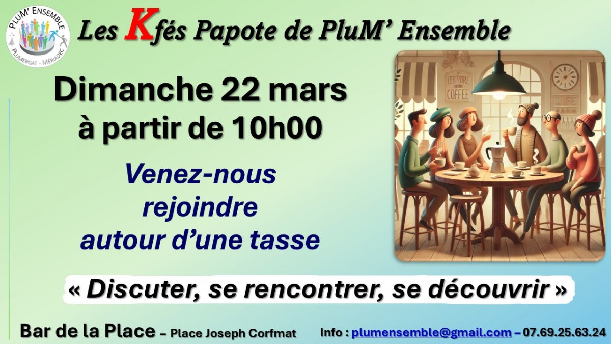 🙌 PluM' Ensemble vous propose de se retrouver autour d'un tapis de jeux pour partager un moment de convivialité. 📅 Vendredi 13 mars à partir de 17h30 📍 au bar de la Place, Plumergat 🀄🃏 Au menu : belote, tarot, PLUMERGATAISE .... 🆓 Pas besoin d'être adhérent pour participer, inscription non obligatoire. 🍻 Activité gratuite,