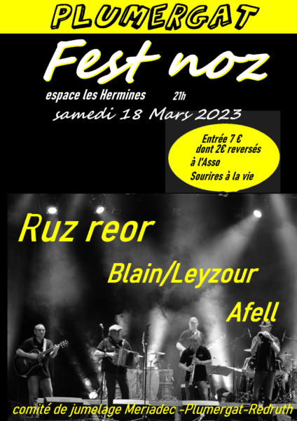 Le comité de jumelage Plumergat / Mériadec / Redruth organise son Fest noz de Printemps le 18 mars à partir de 21h00. Animation : Rue reor | Blain /Leyzour |