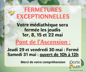 Médiathèque Porte Plum’, 2 rue Joseph Evenas, 56400 Plumergat – 02 97 87 08 81