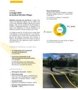 Données budgétaires [voir : Votre Mairie | Budget/Finances (Bas de page)] , ou en ligne : Clin d’Oeil MAI 2025 (page 6) et illustration ci-dessous