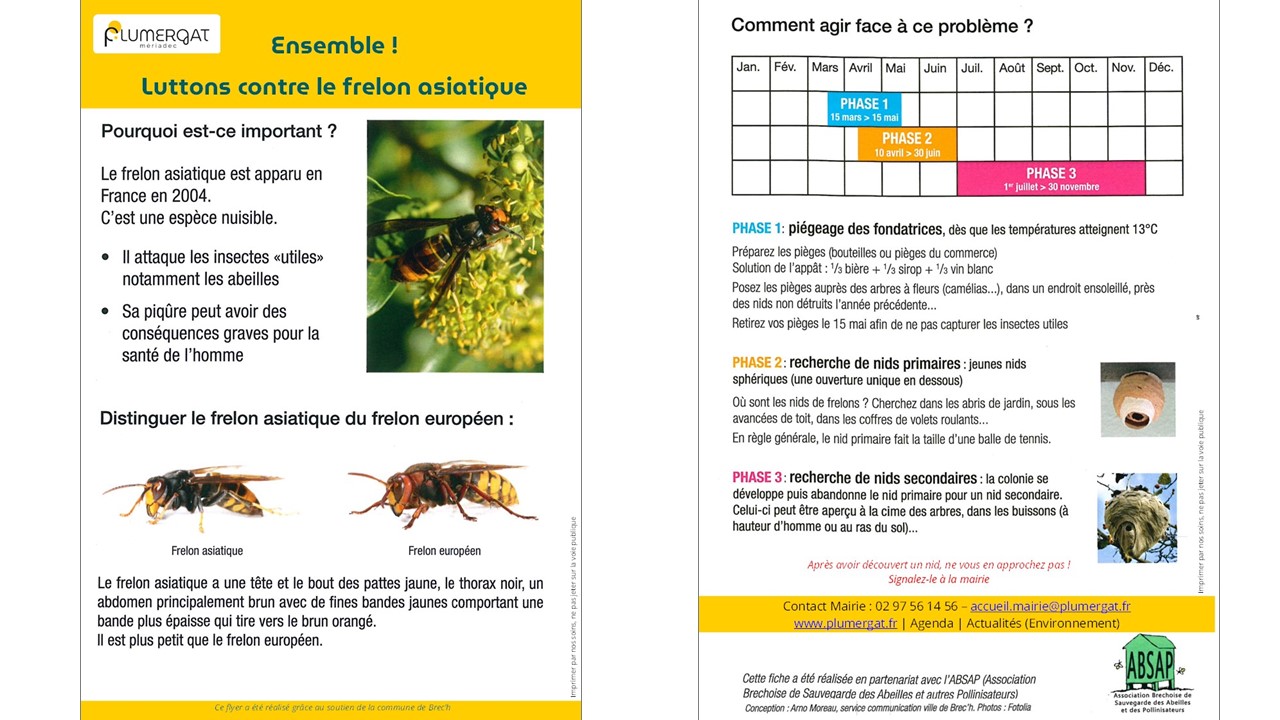 Pour plus d’information sur ce sujet, veuillez consulter sur www.plumergat.fr | Agenda | Actualités (Environnement) – Lutte contre le frelon asiatique